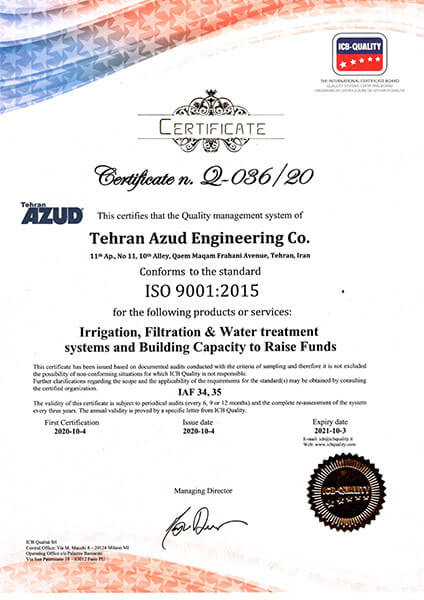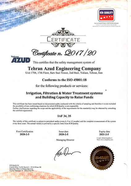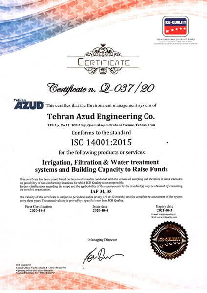 شرکت مهندسی تهران آزود از سال 1380 فعالیت خود را آغاز نموده است. در ابتدا این شرکت به عنوان نماینده شرکت آزود اسپانیا، اقدام به واردات و توزیع لوازم آبیاری تحت فشار مانند فیلترهای دیسکی با امکان شستشوی دستی و اتوماتیک، نوارهای آبیاری قطره ای(Tape) ، انواع لوله قطره چکان دار با قطره چکان های معمولی (Compact) و PC (امکان کنترل دبی به نسبت تغییر فشار) و غیره می نمود و از سال 1385 با توجه به وسعت فعالیت های مثبت این شرکت در سطح ایران، موفق به انعقاد قرارداد سرمایه گذاری مشترک (Joint Venture) با شرکت آزود اسپانیا گردید. در این قرارداد که به عنوان اولین قرارداد جذب سرمایه گذاری اروپایی در بخش کشاورزی برای تولید لوازم آبیاری تحت فشار در ایران می باشد، اقدام به انتقال بخشی از ماشین آلات تولید لوله های قطره چکان دار از اسپانیا به ایران شد و در حال حاضر شرکت مهندسی تهران آزود به عنوان دفتر شرکت آزود اسپانیا در ایران اقدام به تولید محصولات یاد شده در ایران می نماید.