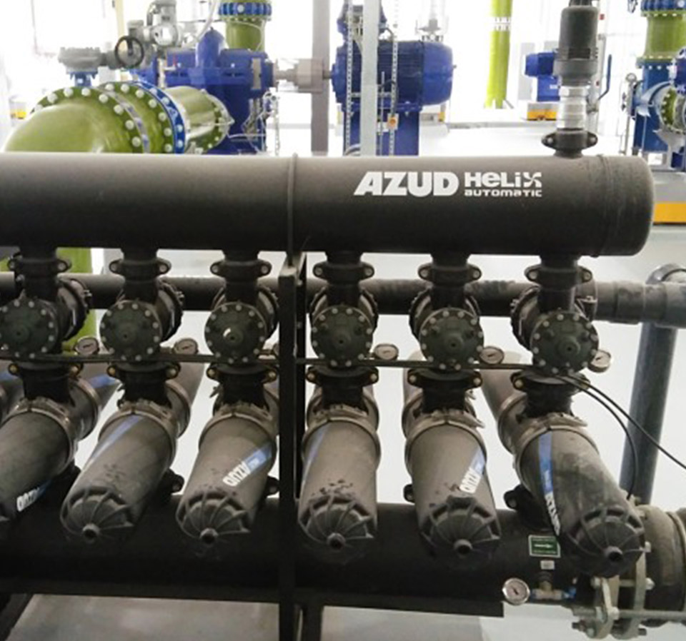 در این پکیجها از فیلترهای دیسکی 4 اینچ سوپر آزود (دوقلو) استفاده میشود که هر المان فیلتر از مجموعه دیسک های شیاردار با سایز شیار مختلف از 5، 10، 20، 50، 100، 130، 200، 400 میکرون تشکیل شده که بروی هم بصورت فشرده شده، قرار گرفته اند و قابلیت فیلتر کردن ذرات جامد معلق تا سایز مش بندی دیسک ها را دارا میباشند. به ازای هر فیلتر دوقلو یک عدد شیر سه راهه هیدرولیکی جهت شستشوی اتوماتیک دستگاه (بکواش) و یک فشارسنج روغنی (گلیسرین) “4/1 رزوه ای با دو مقیاس bar/psi (psi 0-145 / bar 0-10) و 1 عدد نصب شده بروی منیفولد خروجی موجود میباشد.
