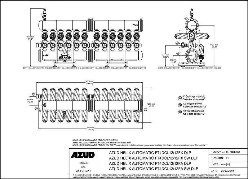 | FT4DCL12 | 12 فیلتر 4 اینچ دوقلو | 38880 | 10 اینچ 12 اینچ | 380 (1673) 624 (2748) | 336 (1480) | 3670 – 1200 – 2010 |