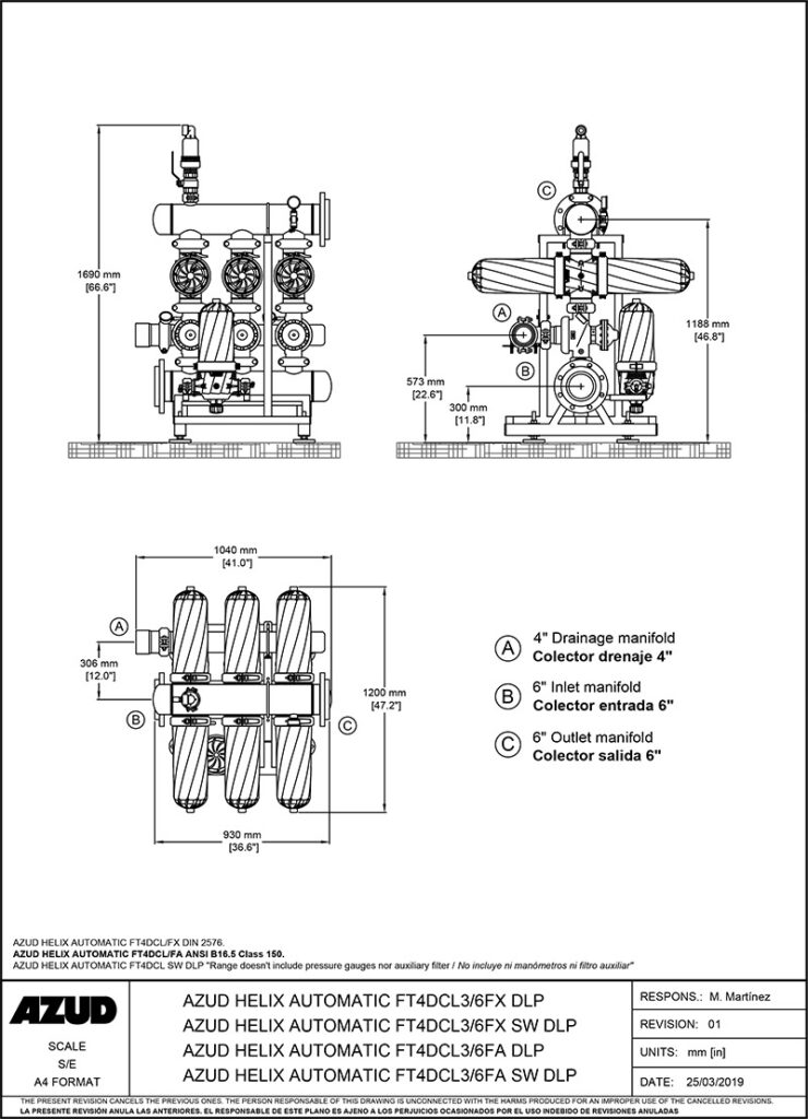 | FT4DCL6 | 6 فیلتر 4 اینچ دوقلو | 19440 | 8 اینچ 10 اینچ | 240 (1057) 312 (1374) | 168 (740) | 1870 – 1200 – 1875 |